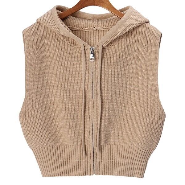 トップス ニット ベスト ショート ショート丈 袖なし ノースリーブ フード付き ファスナー 前開き リブニット 伸縮性 かわいい 大人可愛い シンプル カジュアル おしゃれ こなれ感 ラフ スポーティー 抜け感 ナチュラル やわらかい 着心地 無地 万能 ベーシック 大人カジュアル 春 秋 冬 レディース 合わせやすい お出かけ 公園 デイリー 着回し 普段使い 重ね着 楽ちん 防寒 脚長 スタイルアップ レイヤード フリーサイズ ワンサイズ 黒 ブラック ベージュ ミント
