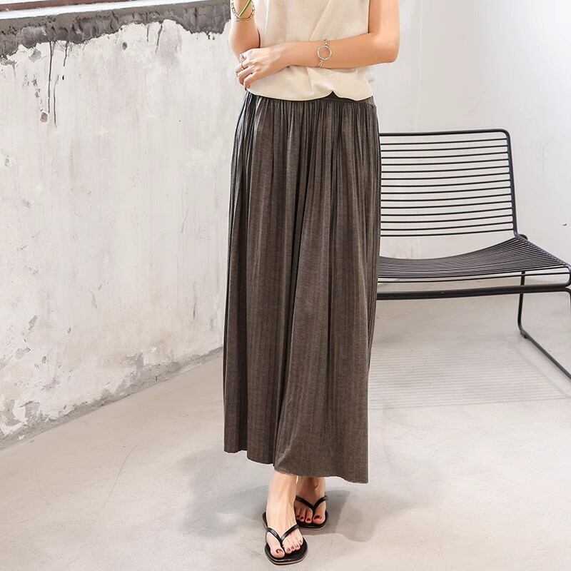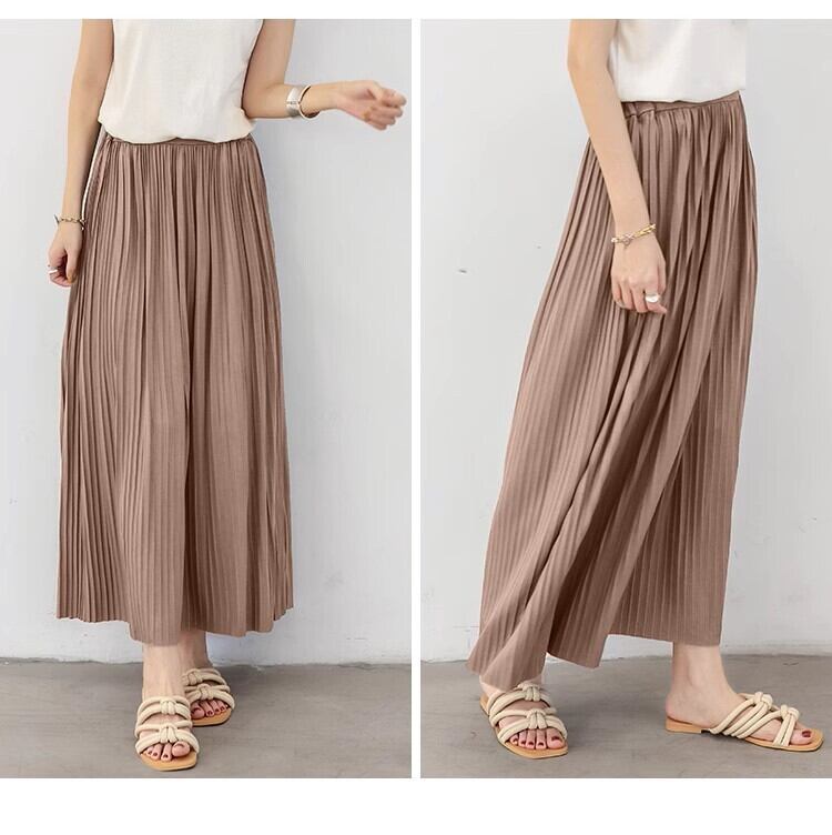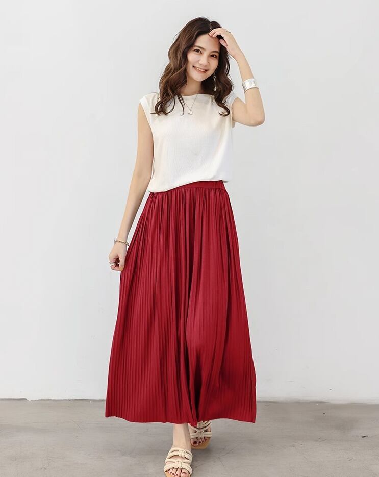 レディース スカート プリーツスカート フレアスカート ロングスカート ロング セミフレア Aライン ドレープ プリーツ ウエストゴム 薄手 柔らか 大人可愛い きれいめ シンプル カジュアル おしゃれ レトロ こなれ感 ラフ ルーズ とろみ感 抜け感 キュート ラグジュアリー アクティブ ナチュラル 休日感 フェミニン 大人女子 活発 お茶目 控えめ 涼し気 リラックス 無地 春 夏 お出かけ 楽ちん 普段使い 着回し トレンド ゆったり ブラック ブラウン グレー ベージュ レッド ネイビー カーキ