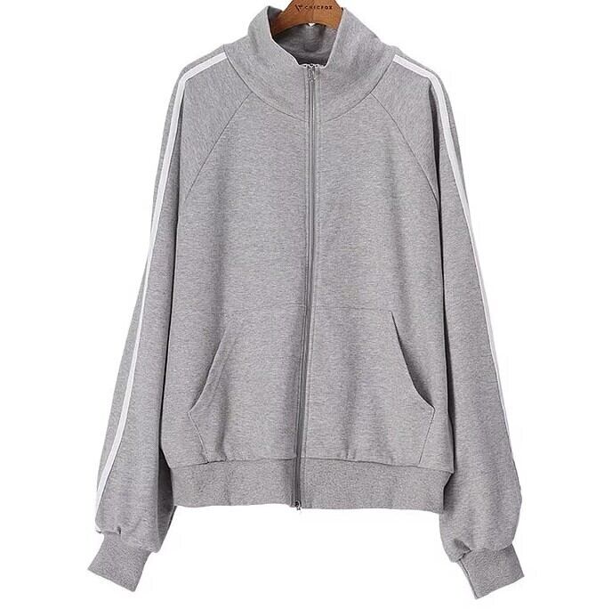 トップス ライトアウター パーカー ジャンパー 上着 スウェット 羽織 長袖 二本ライン ハイネック 立ち襟 ファスナー ポケット 前開き Wジッパー 伸縮性 シンプル カジュアル ラフ スポーティー やわらかい 着心地 部屋着 ルームウェア 無地 万能 ベーシック 春 秋 レディース 合わせやすい 休日 運動 ジム トレーニング フィットネス ウェア デイリー 着回し 普段使い 重ね着 楽ちん 体型カバー 定番 リラックス フリーサイズ ゆったり 黒 ブラック 灰色 グレー