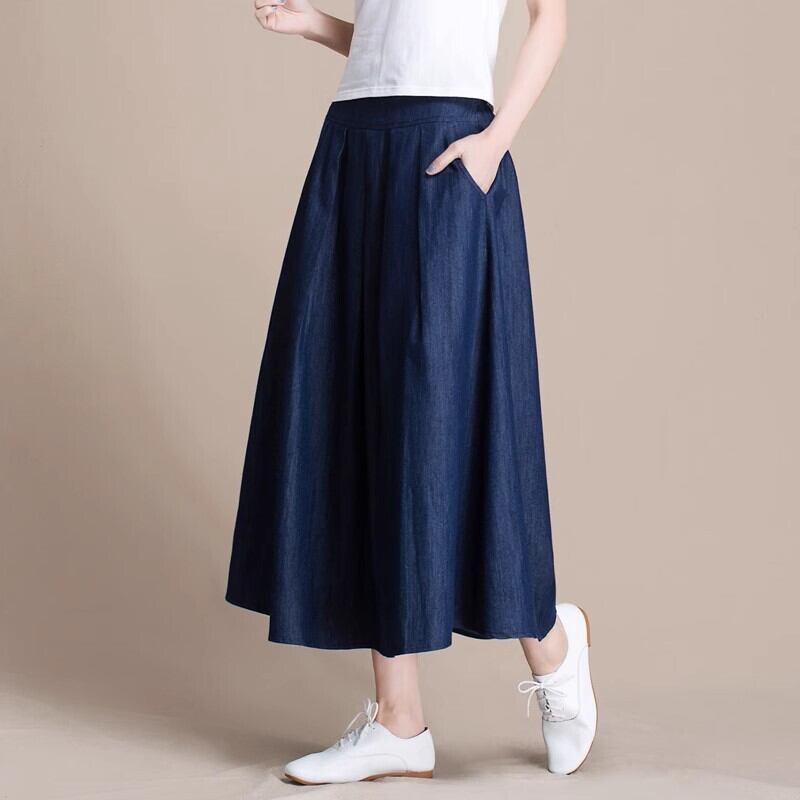 レディース スカート デニム クロップドスカート デニムスカート フレアスカート ロングスカート 8分丈 クロップド丈 フレア Aライン ポケット ウエストゴム ブルーデニム ハリ感 大人可愛い シンプル カジュアル おしゃれ レトロ こなれ感 ラフ 個性的 フォーマル 抜け感 キュート ラグジュアリー カレッジ風 アクティブ 休日感 活発 無地 春 夏 秋 お出かけ アウトドア 公園 休日 ショッピング カフェ 散歩 レジャー 楽ちん 体型カバー 普段使い 着回し トレンド 定番 ゆったり ブルー