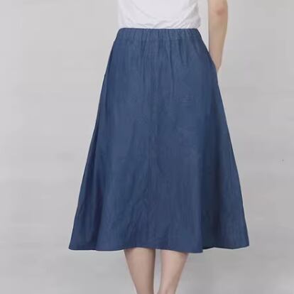 レディース スカート デニムスカート 膝下 ミモレ セミフレア ウエストゴム ブルーデニム 薄手 かわいい 大人可愛い シンプル カジュアル おしゃれ かっこいい こなれ感 ラフ キュート アクティブ ロマンティック ナチュラル カジュアルコーデ 無地 春 夏 秋 ロングシーズン 20代 デート お出かけ 旅行 レストラン 女子会 休日 ショッピング お花見 カフェ 海外旅行 散歩 ピクニック コーデ 楽ちん 体型カバー 美脚 脚長 プチプラ 普段使い トレンド 流行 インスタ映え 定番 涼しげ フリーサ