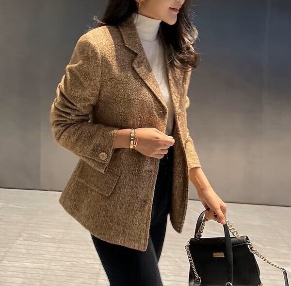 アウター ジャケット テーラードジャケット 上着 スーツ ブレザー 羽織 レギュラー丈 フラップポケット 長袖 襟付き テーラード くるみボタン ポケット 前開き フロントボタン 袖口ボタン ツイード きれいめ シンプル カジュアル 大人 上品 おしゃれ レトロ こなれ感 エレガント モダン フォーマル 無地 万能 ベーシック 大人カジュアル 春 秋 冬 レディース 合わせやすい デイリー 着回し 普段使い 重ね着 定番 王道 フリーサイズ ゆったり ゆる ワンサイズ 黒 ブラック ベージュ