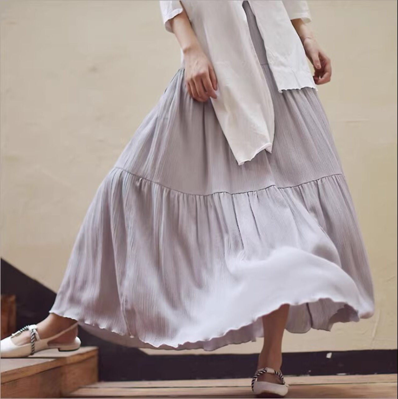 レディース スカート ボトムス フレアスカート ロングスカート ロング フレア Aライン 切り替え ウエストゴム ギャザー 薄手 リネン 綿 コットン 麻 柔らか リネン混 コットン混 シンプル カジュアル おしゃれ レトロ こなれ感 ラフ ルーズ 抜け感 キュート アクティブ ナチュラル 休日感 フェミニン 大人女子 控えめ 涼し気 リラックス 無地 夏 お出かけ リゾート 休日 バカンス カフェ フェス 散歩 楽ちん 体型カバー 普段使い 着回し ゆったり ホワイト ブラック グレー ピンク ブルー