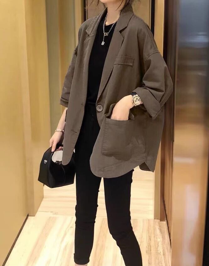 都会的なシンプルデザインで、大人可愛さとこなれ感が漂うレディースアウター!主役級の存在感と抜け感を備え、モード系でクールな印象を与えます。春から秋まで着回せる無地の魅力と、OLから学生まで幅広いシーンに対応します。