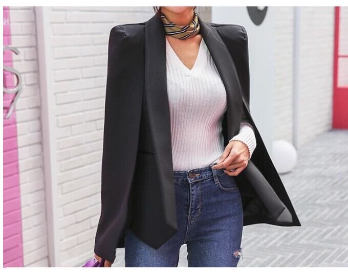 レディース ジャケット アウター 上着 テーラードジャケット マント風 長袖 襟付き 角襟 前開き かわいい 大人可愛い きれいめ シンプル カジュアル 上品 おしゃれ かっこいい 個性的 クール モード系 エレガント モダン 主役級 存在感 フォーマル かっちり 都会的 無地 誕生日 謝恩会 ロングシーズン シーズンレス OL 通勤 学生 学校 通学 お出かけ お泊まり パーティー イベント レストラン 高原 ホテル ガーデン ショッピング 発表会 コンパ カフェ 婚活 体型カバー インスタ映え 定番