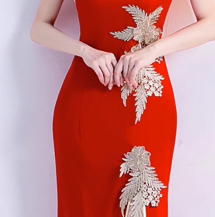 ゴージャスで立体的な刺繍が目を惹くマーメイドラインの半袖ロングチャイナドレス。スリムフィットなマーメイドラインでセクシーにスタイルアップ、深いスリットが美脚シルエットを演出してくれます。エレガントでビビッドな2カラーをご用意しました♪