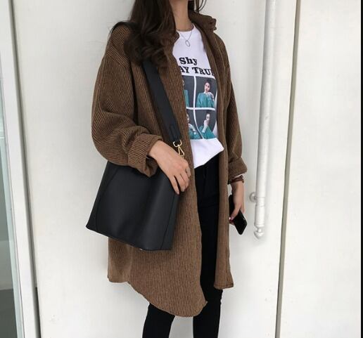 中厚手で秋冬にぴったりです。様々なコーディネートに合わせやすいので、一枚持っていると便利です。