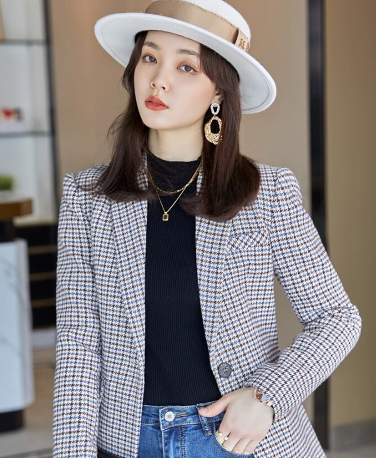ジャケット アウター 上着 テーラードジャケット 襟付き 角襟 タイト スリム 細身 前開き かわいい 大人可愛い きれいめ シンプル カジュアル 上品 おしゃれ かっこいい モード系 エレガント モダン 主役級 存在感 フォーマル かっちり 都会的 千鳥格子 シーズンレス 会議 MTG ミーティング プレゼン オフィス ビジネス OL 通勤 学生 お出かけ お泊まり パーティー イベント 休日 ホテル ガーデン 発表会 コンサート ライブ コスプレ 合コン コンパ カフェ 婚活 普段使い 着回し