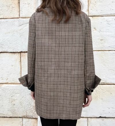 モード感溢れるチェック柄ジャケット。ショーツやスカートとの相性も抜群で、大人かわいいスタイリングにぴったりです。ショート丈で襟付き、前開きボタン仕様なので、カジュアルからきれいめまで幅広いコーディネートに活躍します。