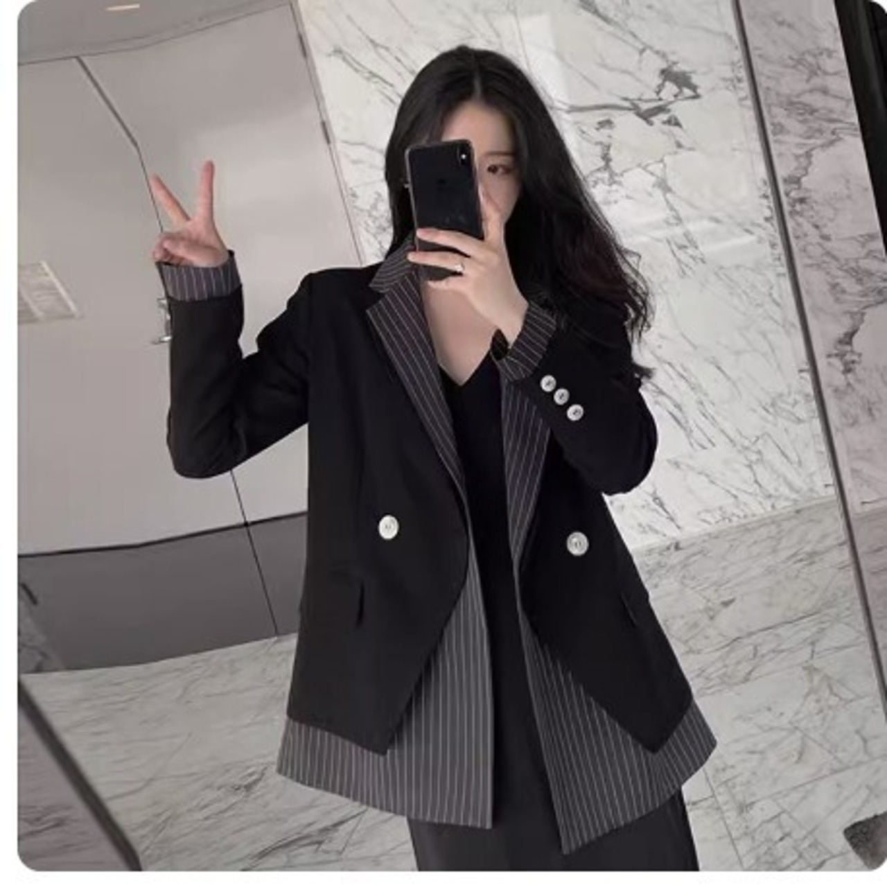 ジャケット アウター 上着 テーラードジャケット 長袖 襟付き 角襟 前開き かわいい 大人可愛い きれいめ シンプル カジュアル 上品 おしゃれ かっこいい 個性的 クール モード系 エレガント モダン 主役級 存在感 フォーマル かっちり 都会的 ストライプ シーズンレス OL 通勤 学生 学校 通学 お出かけ お泊まり パーティー イベント 女子会 休日 ホテル ガーデン ショッピング 発表会 コンサート ライブ 合コン コンパ カフェ 婚活 韓国 オルチャン コーデ インスタ映え