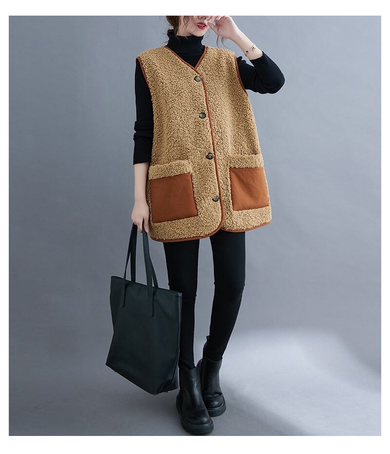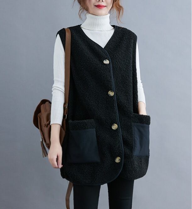 レディース ベスト アウター 上着 袖なし Vネック 襟なし ワイド ふっくら ポケット 前開き ボタン ボア 厚手 異素材ミックス 大人可愛い カジュアル おしゃれ レトロ ガーリー 個性的 ラブリー キュート ベーシック アメリカン カントリー アクティブ ナチュラル ワイルド 無地 秋 冬 クリスマス ママ マタニティ オフィス ビジネス OL 通勤 通学 お出かけ アウトドア キャンプ 休日 高原 ショッピング カフェ 暖かい 防寒 体型カバー 普段使い 着回し L XL 黒 ブラック ベージュ