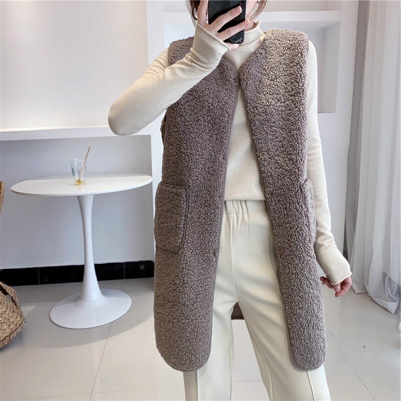 レディース ベスト アウター 上着 インナー ロング ノースリーブ Vネック ストレート もこもこ ポケット ボタン ボア 裏起毛 かわいい 大人可愛い きれいめ シンプル カジュアル 上品 おしゃれ こなれ感 ラフ ガーリー ラブリー キュート 無地 秋 冬 通勤 学生 学校 デート お出かけ 女子会 ショッピング 韓国 コーデ 楽ちん 暖かい 防寒 普段使い 着回し モテ トレンド 流行 インスタ映え S M L XL 2XL 3XL 4XL 大きいサイズ ゆったり ブラウン オフホワイト ベージュ