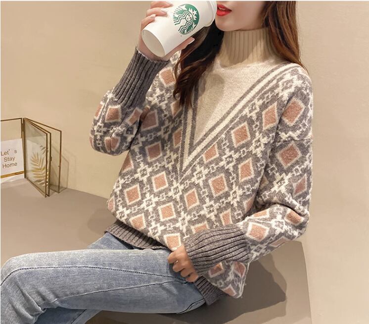 個性的なデザインが魅力のハイネックニットセーターです。タートルニットとVネック風のデザインを組み合わせた、一枚で存在感のあるアイテムです。着るだけでこなれ感を演出しつつ、個性を引き立てることができます。