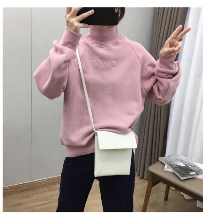 トップス プルオーバー トレーナー 長袖 ハイネック かわいい 大人可愛い シンプル カジュアル おしゃれ かっこいい こなれ感 ラフ メンズライク ボーイッシュ スポーティー ルーズ 個性的 クール モード系 抜け感 都会的 ロゴ 誕生日 ロングシーズン シーズンレス OL 学生 学校 通学 部活 お出かけ お泊まり 公園 女子会 休日 ショッピング カフェ 重ね着 お揃い 双子 韓国 オルチャン コーデ 楽ちん プチプラ 普段使い 着回し 定番 ゆったり ゆる ホワイト ブラック ピンク ネイビー