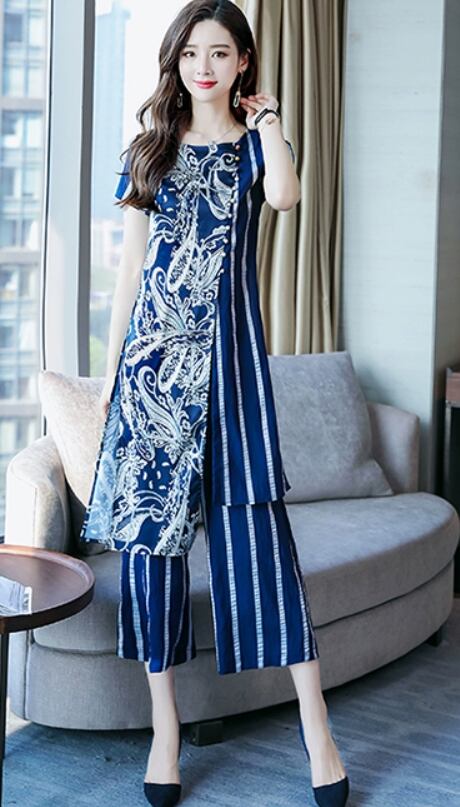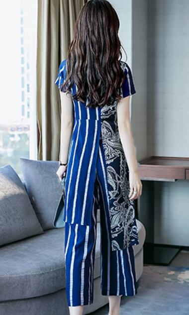 2点セット レディース トップス パンツ ボトムス クロップドスカート 8分丈 半袖 ラウンドネック 襟なし Aライン アシンメトリー 裾ワイド 薄手 かわいい 大人可愛い きれいめ シンプル カジュアル 上品 おしゃれ アジアン こなれ感 個性的 主役級 存在感 とろみ感 抜け感 ストライプ 夏 誕生日 発表会 授業参観 大会 会議 MTG ミーティング プレゼン ママ マタニティ オフィス ビジネス OL 通勤 学生 学校 通学 デート お出かけ お泊まり 旅行 海 レストラン 公園 女子会 休日 高