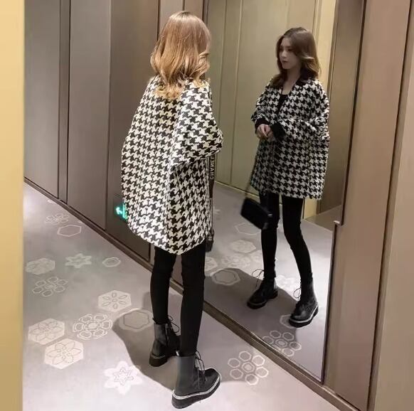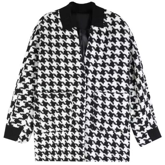 クラシカルな千鳥格子がシックな印象のレディースチェスターコート。