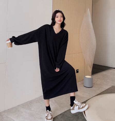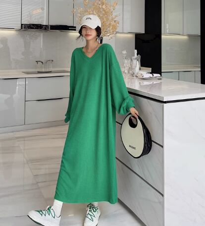 このワンピースは、ゆったりとしたオーバーサイズのシルエットが特徴で、体型を気にせずにおしゃれを楽しめます。Uネックと長袖デザインで、上品さもプラスされます。