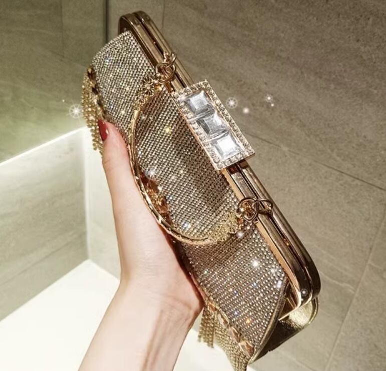フォーマルシーンにふさわしい煌めくビジューが散りばめられたゴージャスでエレガントなパーティーバッグ。ハンドル&チェーンストラップはバッグ内に収納可能で気軽にスタイル変更できるのが便利です♪パーティードレスはもちろんの事、和装にも合わせやすいので様々なシーンで大活躍まちがいなしです◎
