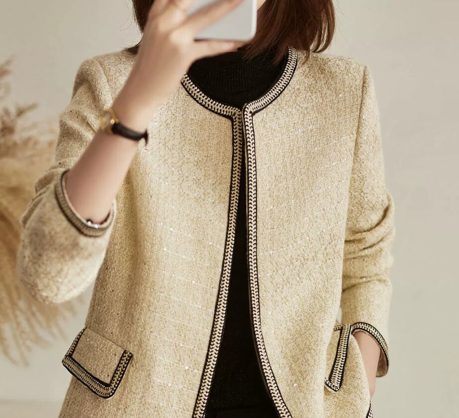 スパンコール レディース ジャケット 上着 羽織 ノーカラージャケット 長袖 ノーカラー ストレート ポケット 前開き 中厚手 かわいい 大人可愛い きれいめ シンプル カジュアル 上品 おしゃれ こなれ感 個性的 エレガント 主役級 存在感 フォーマル とろみ感 抜け感 かっちり 都会的 秋 発表会 授業参観 大会 会議 MTG ミーティング プレゼン ママ マタニティ オフィス ビジネス OL 通勤 学生 学校 通学 デート お出かけ お泊まり 旅行 海 レストラン 公園 女子会 休日 高原 ホテル