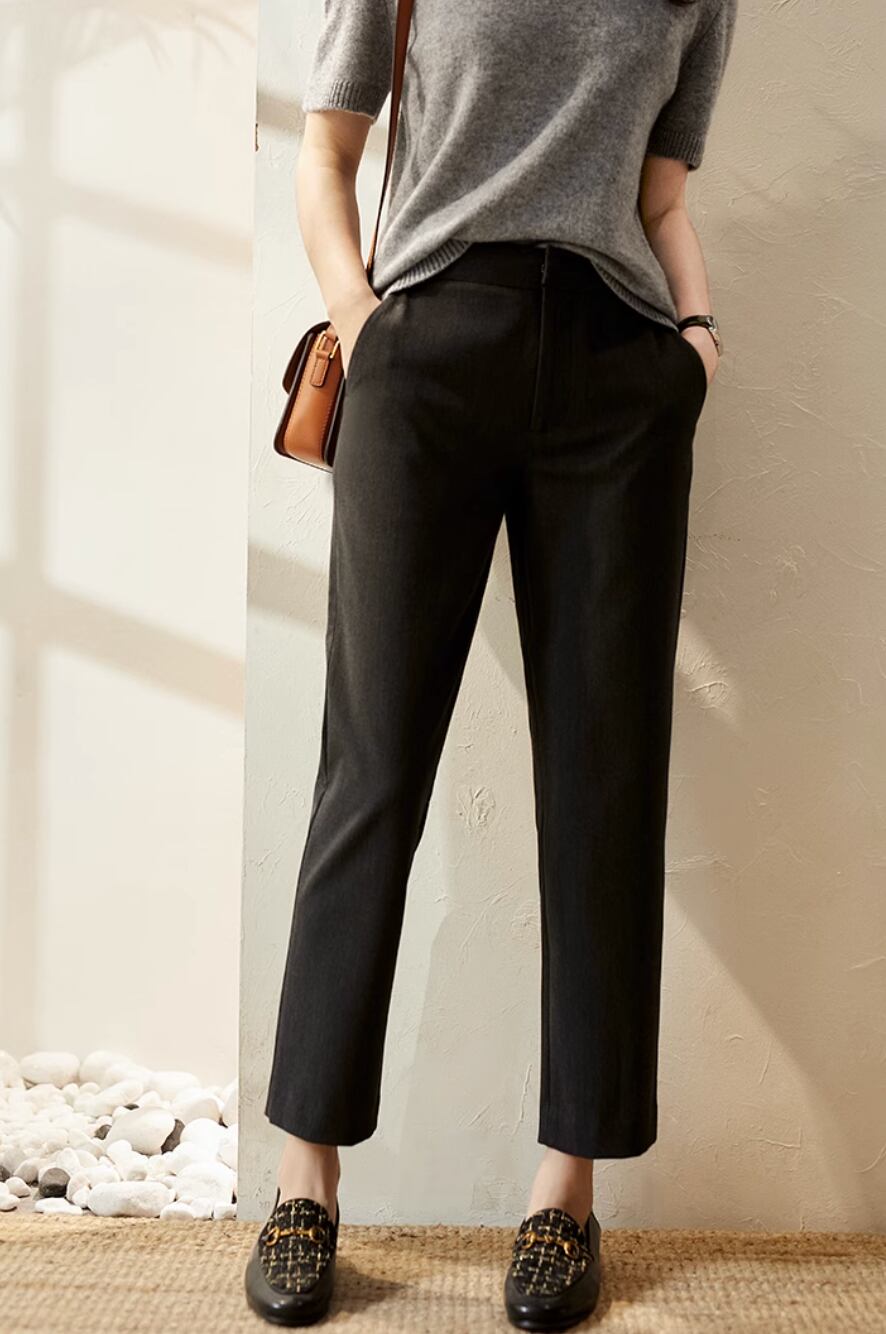 通勤やオフィス、お出かけやパーティーなど様々なシーンで活躍してくれるベーシックなストレートパンツ。シンプルなデザインでありながら、細身のシルエットが美脚効果を発揮します。ビジネスシーンだけでなく、デイリーコーディネートにもぴったりの一本です。ぜひ、この上品さと美脚効果を実感してください。