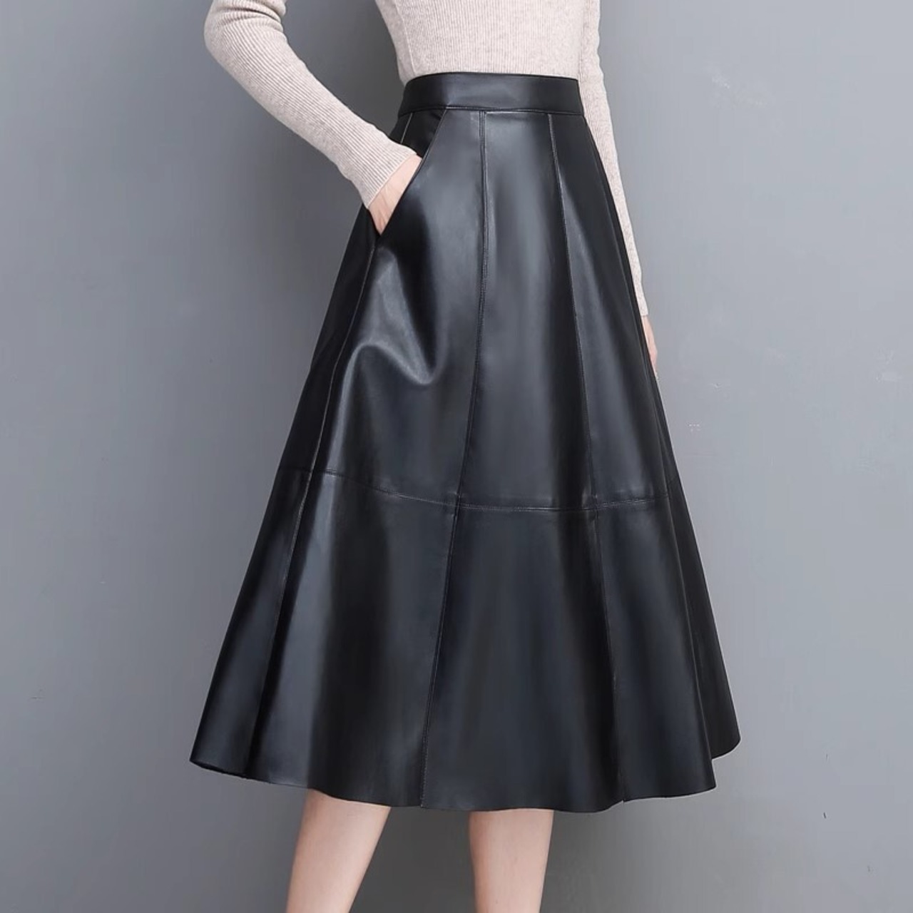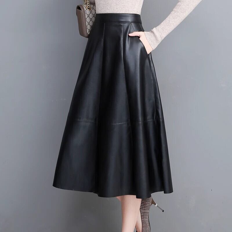 レディース スカート ボトムス レザースカート フレアスカート ミモレ フレア Aライン ファスナー ポケット ハイウエスト レザー フェイクレザー さらさら ハリ感 シンプル カジュアル おしゃれ かっこいい こなれ感 ラフ 個性的 エレガント モダン 存在感 抜け感 ヴィンテージ 都会的 ラグジュアリー クラシカル アクティブ ワイルド 休日感 ハイエンド ストリート 大人女子 無地 秋 冬 アウトドア イベント 休日 ショッピング 合コン Bar お呼ばれ 韓国 体型カバー 着回し ゆる ブラック
