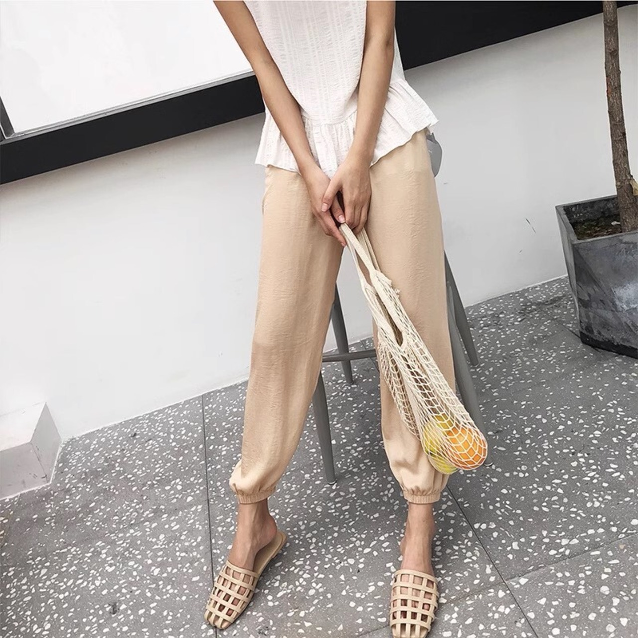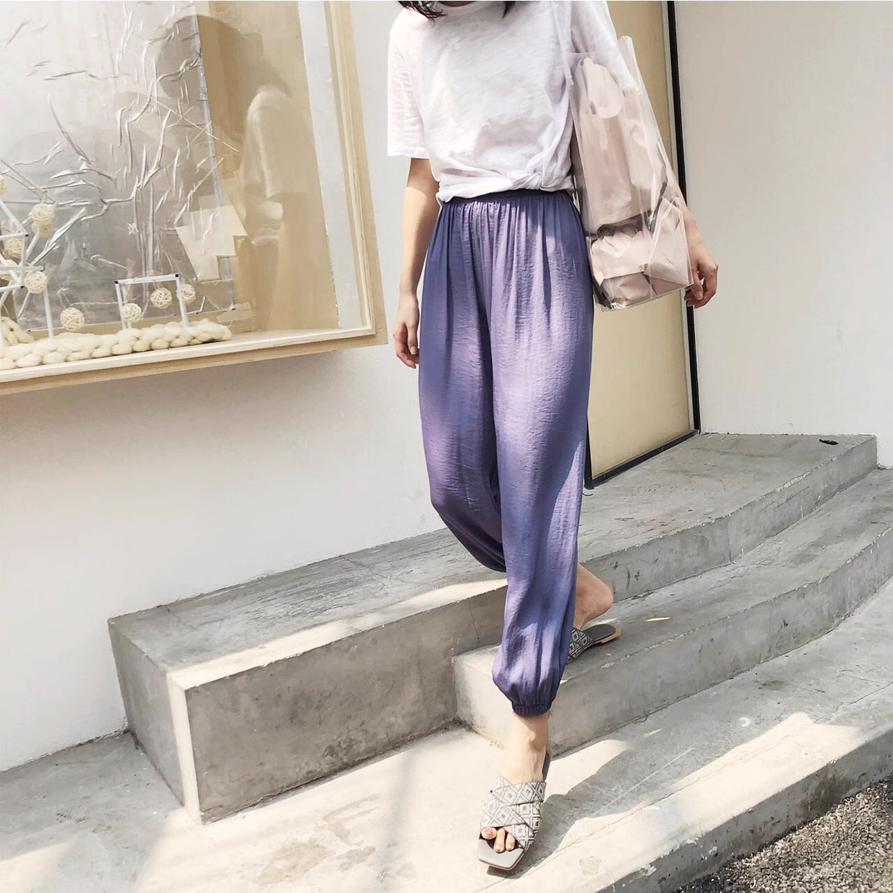 レディース パンツ ボトムス サルエルパンツ ジョガーパンツ ロングパンツ ロング ワイド Iライン オーバーサイズ 裾ゴム 薄手 艶感 光沢 柔らか さらさら ツルツル 涼感 シンプル カジュアル おしゃれ レトロ エスニック こなれ感 ラフ ルーズ 個性的 存在感 とろみ感 抜け感 アクティブ ナチュラル 休日感 ニッチ 涼し気 リラックス 無地 夏 休日 ダンス スポーツ インドア おうち時間 ヨガ 楽ちん 普段使い 着回し トレンド ゆったり ブラック ブラウン グレー ピンク オレンジ ブルー