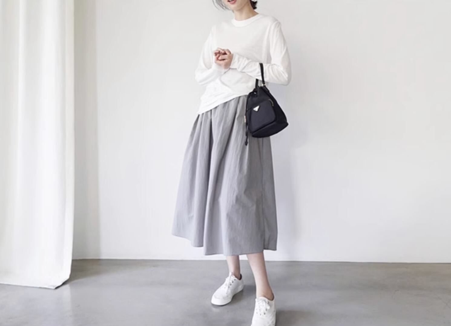 ゆったりとしたシルエットのロングスカートです。ウエストはゴム仕様となっており、ストレスなく快適に着用していただけます。Aラインシルエットが女性らしさを引き立て、さりげなく優雅な印象に。オフィスコーデからカジュアルコーデまで、幅広いシーンに対応できるアイテムです。