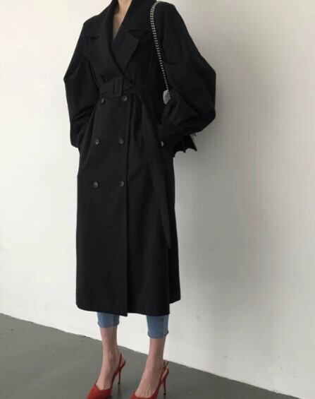 洗練された女性のためのトレンチコート。シンプルながらも上品でモード系のエレガンスが漂う主役級の存在感。ビジネスからデートまで幅広く対応し、かっちりとした都会的なスタイリングが魅力です。