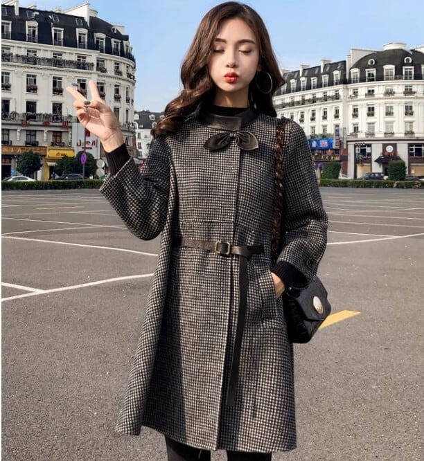 レディース コート アウター 上着 ミディアム 7分袖 ベルト ウエストマーク 前開き かわいい 大人可愛い きれいめ シンプル カジュアル 上品 おしゃれ モード系 エレガント モダン 主役級 存在感 フォーマル かっちり 都会的 チェック オールシーズン 誕生日 ミーティング オフィス ビジネス OL 通勤 学生 学校 通学 デート お出かけ お泊まり 旅行 公園 女子会 休日 ショッピング コンサート ライブ 合コン コンパ カフェ 婚活 韓国 オルチャン 普段使い 着回し モテ インスタ映え