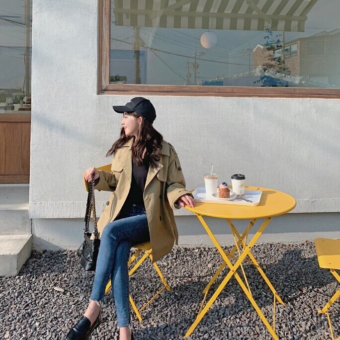 大人可愛いトレンチ。シンプルなデザインながらラグランスリーブでゆるっとカジュアルな大人可愛い印象を与え、ベルトでウエストマークすることでシルエットもきれいに見せてくれます。ダブルプレストのボタンがアクセントで、おしゃれなスタイリングを楽しめます。