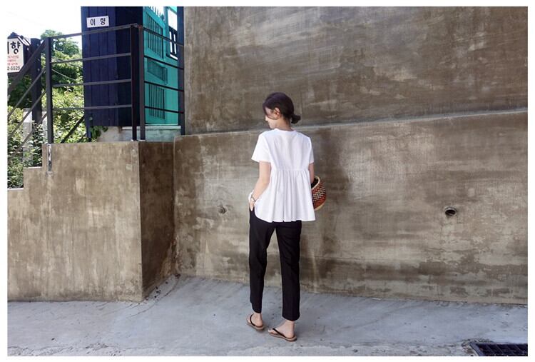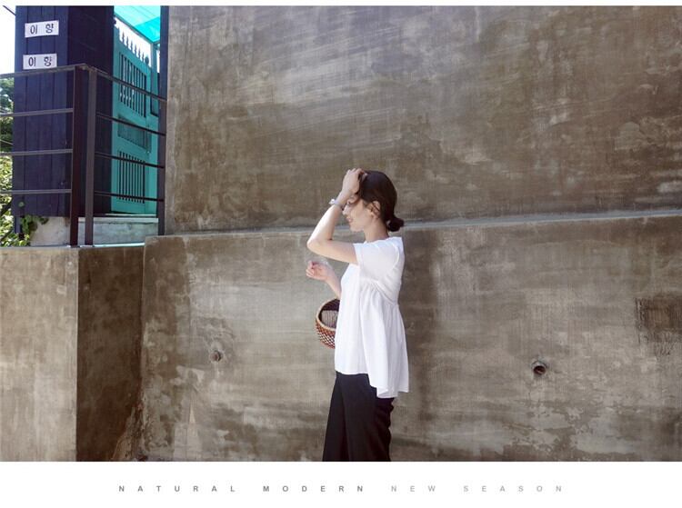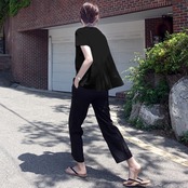 ラウンドネックと裾ワイドなシルエットで、女性らしい印象を与えてくれます。