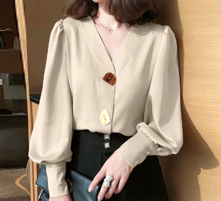 レディース トップス シャツ 長袖 パフスリーブ バルーン袖 Vネック 襟なし ストレート 前開き ボタン 薄手 かわいい 大人可愛い きれいめ シンプル カジュアル おしゃれ こなれ感 ラフ 個性的 主役級 存在感 とろみ感 抜け感 無地 春 秋 誕生日 発表会 授業参観 大会 会議 MTG ミーティング ママ マタニティ オフィス ビジネス OL 通勤 学生 学校 通学 デート お出かけ お泊まり 旅行 海 レストラン 公園 女子会 休日 高原 ホテル ガーデン ショッピング コンサート ライブ お花