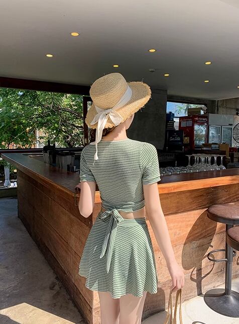 水着 レディース 体型カバー Tシャツ ウエストリボン セット ツーピース 上下セット かわいい 大人可愛い きれいめ シンプル カジュアル ナチュラル おしゃれ 存在感 ラブリー キュート ガーリー 個性的 モダン セクシー フェミニン ヘルシー 定番 ボーダー ストライプ 南国 バケーション デート リゾート 旅行 プール 夏 海 イベント フェス 美脚 脚長 着痩せ スタイルアップ モテ インスタ映え スタイルカバー こなれ感 スポーティー 学生 中学生 高校生 M L XL グリーン カーキ
