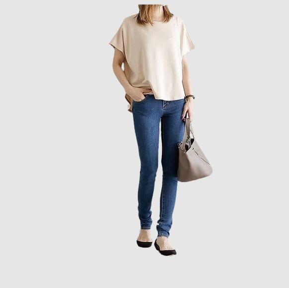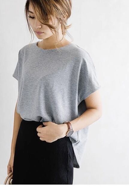 ストレッチが効いているので、動きやすく、着心地も抜群です。デニムやチノパン、スカートなど、様々なボトムスに合わせやすい万能なトップスです。