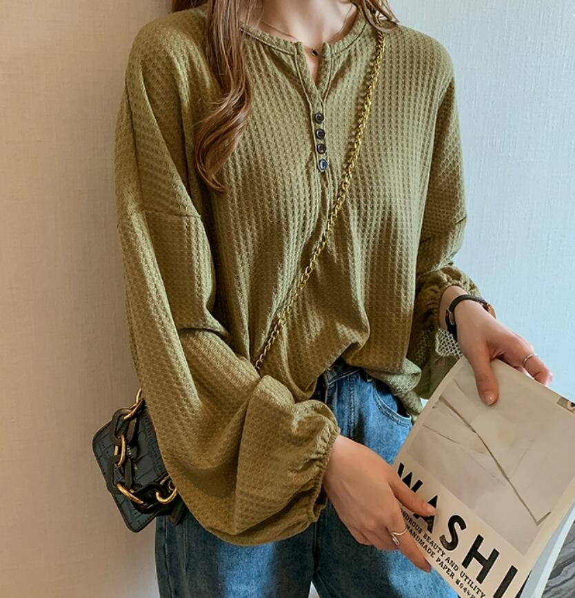 レディース トップス カットソー 長袖 ボリューム袖 ドロップショルダー ラウンドネック 襟なし ストレート ボタン 薄手 かわいい 大人可愛い きれいめ シンプル カジュアル おしゃれ こなれ感 ラフ ルーズ 個性的 主役級 存在感 とろみ感 抜け感 無地 春 秋 誕生日 発表会 授業参観 大会 会議 MTG ミーティング プレゼン ママ マタニティ オフィス ビジネス OL 通勤 学生 学校 通学 デート お出かけ お泊まり 旅行 海 レストラン 公園 女子会 高原 ホテル ガーデン ショッピング