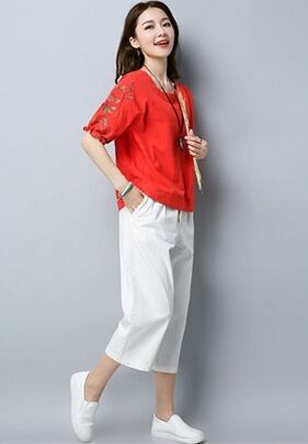 こちらのレディースブラウスは、ショート丈の半袖パフスリーブに、ラウンドネックとセミフレアのボトムラインがフェミニンな印象です。また、刺繍が施されているので、さりげなく華やかさをプラスできます。薄手なので夏でも涼しく着ていただけます。カジュアルにもフォーマルにも合わせやすいので、様々なシーンで活躍します。