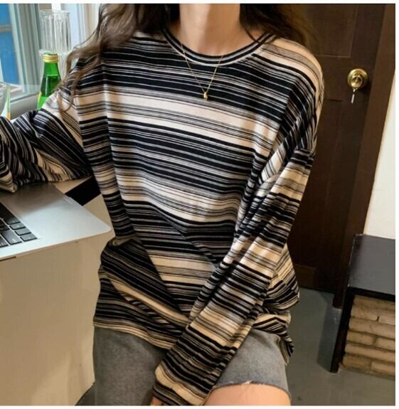 レディース トップス ロンT カットソー 長袖 Uネック かわいい 大人可愛い きれいめ シンプル カジュアル おしゃれ かっこいい ルーズ 個性的 クール モード系 エレガント モダン 主役級 存在感 抜け感 都会的 ボーダー 春 秋 誕生日 OL 学生 学校 通学 デート お出かけ お泊まり 旅行 レストラン 女子会 休日 高原 ホテル ガーデン ショッピング コンサート ライブ 合コン コンパ カフェ 婚活 重ね着 お揃い 韓国 オルチャン コーデ 楽ちん プレゼント 普段使い 着回し 定番