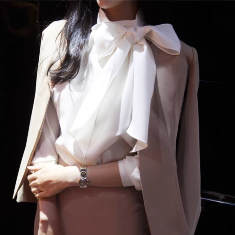 レディース トップス シャツ ブラウス プルオーバー 長袖 パフスリーブ ハイネック シフォン リボン 透け感 薄手 柔らか 大人可愛い きれいめ シンプル 上品 おしゃれ こなれ感 ガーリー 個性的 エレガント 主役級 存在感 キュート 都会的 ラグジュアリー ロマンティック ハイエンド ドレッシー フェミニン 大人女子 キャッチー 無地 春 秋 会議 オフィス ビジネス デート お出かけ パーティー レストラン ホテル 婚活 お呼ばれ 韓国 体型カバー 普段使い 着回し 清楚 ゆる ホワイト ブラック