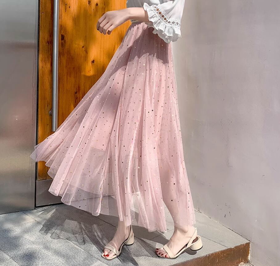 メッシュスカート レディース スカート ボトムス チュールスカート フレアスカート ロングスカート レーススカート フェミニン チュール シフォン ハイウエスト ウエストゴム レースアップ 透け感 シースルー 伸縮性 スパンコール ギャザー かわいい 大人可愛い きれいめ 上品 ガーリー エレガント モダン 主役級 存在感 とろみ感 抜け感 ラブリー キュート プリンセス ロマンティック 春 夏 ママ オフィス ビジネス OL 通勤 通学 デート フリーサイズ 黒 ブラック グレー ベージュ ピンク