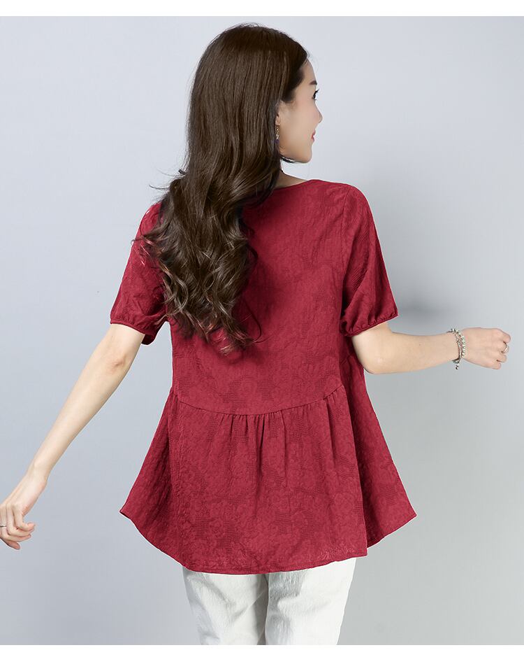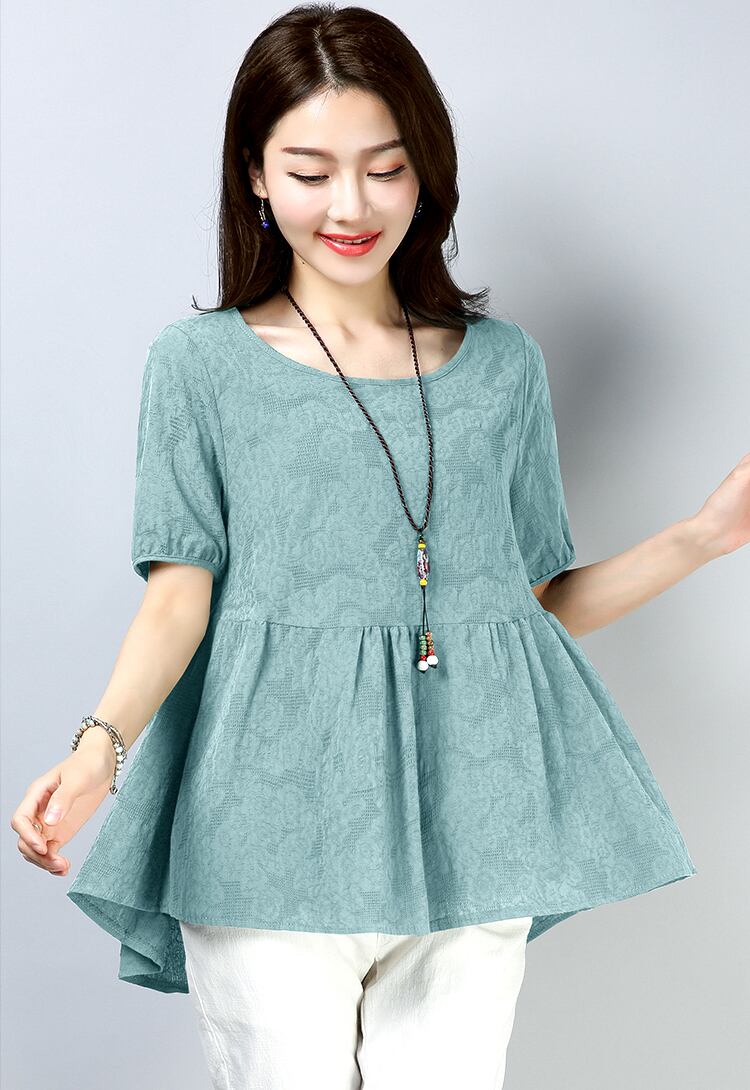 レディース トップス チュニック 半袖 ラウンドネック フレア ペプラム フェミニン ウエストマーク 薄手 綿 コットン かわいい 大人可愛い シンプル カジュアル おしゃれ レトロ ラフ ガーリー 個性的 キュート カントリー ロマンティック ナチュラル 無地 春 夏 ママ マタニティ デート お出かけ 旅行 公園 女子会 休日 ショッピング 楽ちん 体型カバー 普段使い 着回し M L XL 2XL 3XL 4XL 大きいサイズ ゆったり ゆる ピンク レッド ネイビー ライトブルー 緑 グリーン
