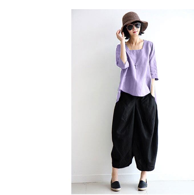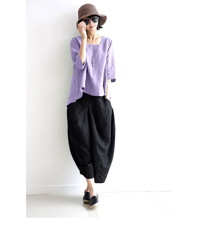 スクエアネックとセミフレアシルエットがフェミニンなプルオーバー。薄手のリネン混紡生地でさらりと着心地よく、ポケット付きで普段使いにぴったりです。シンプルなデザインなので、様々なコーディネートに合わせやすく、体型カバーもできる優秀アイテムです。