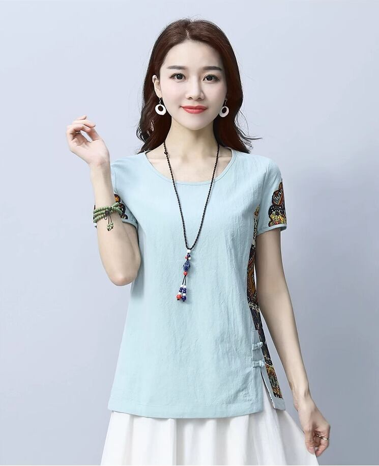 レディース トップス Tシャツ 半袖 バルーン袖 ラウンドネック フェミニン 刺繍 切り替えデザイン 薄手 リネン 綿 異素材ミックス コットン かわいい カジュアル レトロ アジアン エスニック キュート カントリー ロマンティック 無地 オールシーズン ママ 通学 デート お出かけ 公園 休日 ショッピング 楽ちん 体型カバー 普段使い 着回し S M L XL 2XL 3XL 4XL 5XL ゆったり ゆる 白 ホワイト 黄色 イエロー ピンク オレンジ 水色 ブルー 緑 グリーン モスグリーン