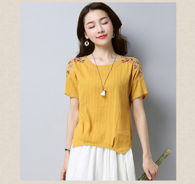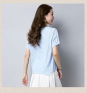 肩の花刺繍がフェミニンなプルオーバーです♪リネン、綿、コットンの異素材ミックスなので、通気性が良く、夏にぴったりです!