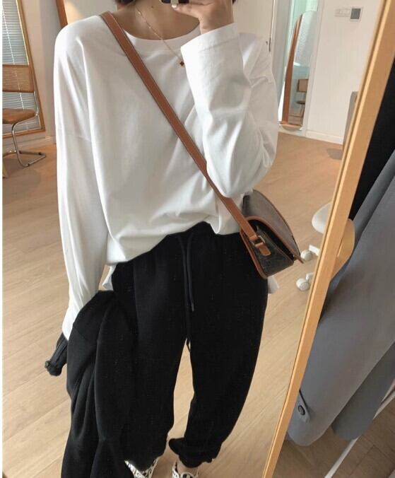 レディース トップス ロンT Tシャツ 長袖 Uネック かわいい 大人可愛い きれいめ シンプル カジュアル おしゃれ かっこいい こなれ感 ラフ ルーズ 個性的 クール モード系 モダン 主役級 存在感 抜け感 都会的 アクティブ 春 秋 シーズンレス OL 学生 学校 通学 デート お出かけ お泊まり 旅行 レストラン 女子会 休日 ショッピング 合コン コンパ カフェ 婚活 韓国 オルチャン コーデ 楽ちん 体型カバー プチプラ 普段使い 着回し インスタ映え 定番 ビッグ ゆったり ゆる