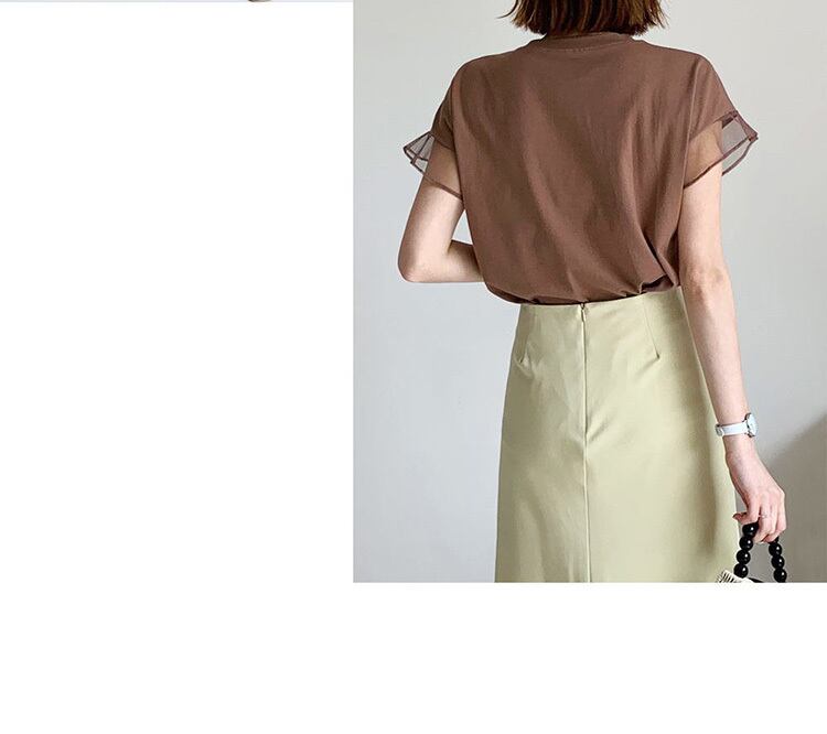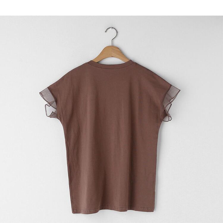 レディース トップス プルオーバー Tシャツ 半袖 フリル袖 ラウンドネック スリム フェミニン シフォン 透け感 薄手 かわいい 大人可愛い カジュアル おしゃれ ガーリー エレガント ラブリー キュート ロマンティック ナチュラル 無地 春 夏 ママ マタニティ オフィス ビジネス 通勤 通学 デート お出かけ アウトドア パーティー リゾート プール 休日 ショッピング カフェ 楽ちん 体型カバー 普段使い 着回し モテ 清楚 M L 白 ホワイト 黒 ブラック 茶色 ブラウン ピンク ネイビー