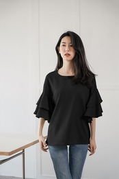 フェミニンなシフォン袖がポイントの半袖トップスです。ラウンドネックとフレアスリーブで女性らしいシルエットを演出します。透け感のあるシフォン素材で、夏にぴったりの涼しげなアイテムです。薄手で着心地もよく、カジュアルからキレイめまで幅広いコーディネートに合わせることができます。