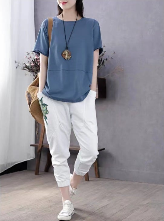 こちらのレディーストップスは、薄手で伸縮性に優れたコットン素材を使用したプルオーバーTシャツです。ラウンドネックのデザインで、シンプルながらもかわいい印象を与えてくれます!