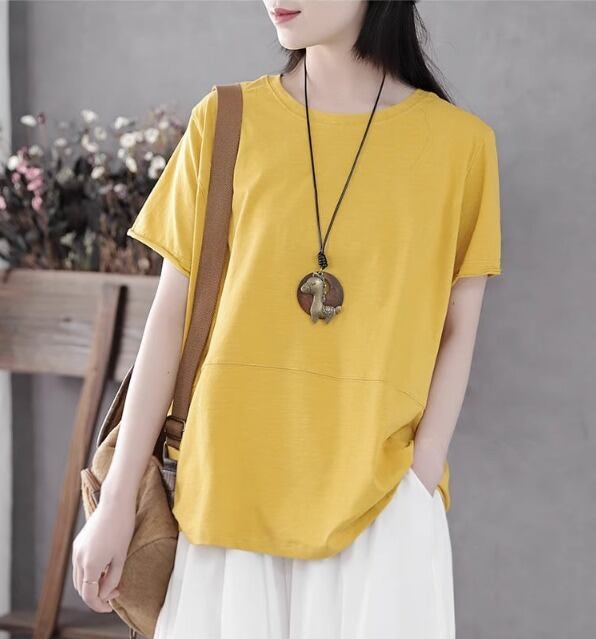 レディース トップス プルオーバー Tシャツ 半袖 ラウンドネック 薄手 綿 コットン 伸縮性 かわいい 大人可愛い シンプル カジュアル おしゃれ メンズライク ボーイッシュ ガーリー ラブリー キュート アメリカン ワイルド 無地 春 夏 ママ マタニティ オフィス ビジネス 通勤 通学 デート お出かけ 旅行 海 プール 休日 ショッピング コンサート 楽ちん 体型カバー 普段使い 着回し L XL 2XL 3XL 4XL 白 ホワイト 黒 ブラック 茶色 ブラウン 黄色 イエロー ピンク ブルー