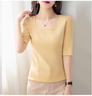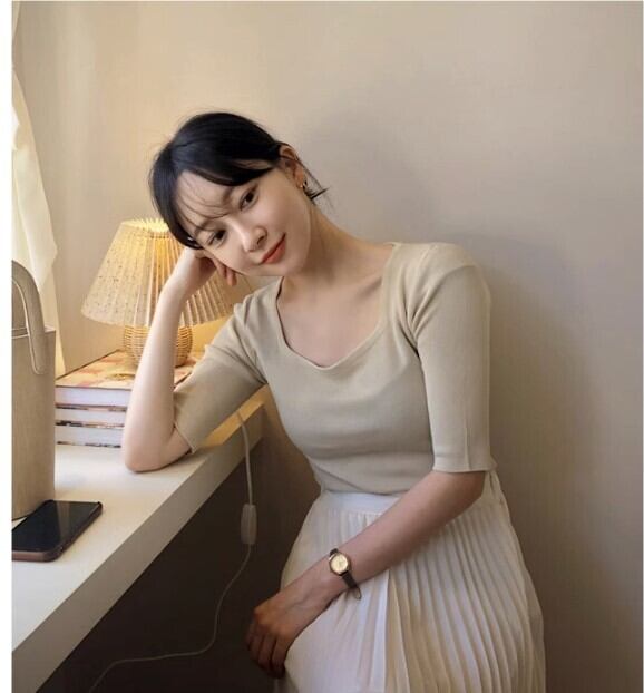 スクエアネックの半袖カットソーで、大人可愛い上品さとクールな個性を演出。シンプルなデザインながら、モード系のこなれ感とエレガントな雰囲気が魅力。どんなシーンにもマッチする着回し力で、ビジネスから休日まで活躍します。