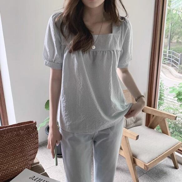 レディース トップス ブラウス 半袖 ボリューム袖 スクエアネック 切り替えデザイン かわいい 大人可愛い きれいめ シンプル カジュアル 上品 おしゃれ こなれ感 ラフ ガーリー 個性的 モード系 エレガント モダン 主役級 存在感 抜け感 都会的 夏 誕生日 OL 通勤 学生 学校 通学 デート お出かけ お泊まり 旅行 レストラン 公園 女子会 休日 高原 ホテル ガーデン ショッピング コンサート ライブ 合コン コンパ カフェ 婚活 韓国 オルチャン コーデ 楽ちん プチプラ 普段使い 着回し